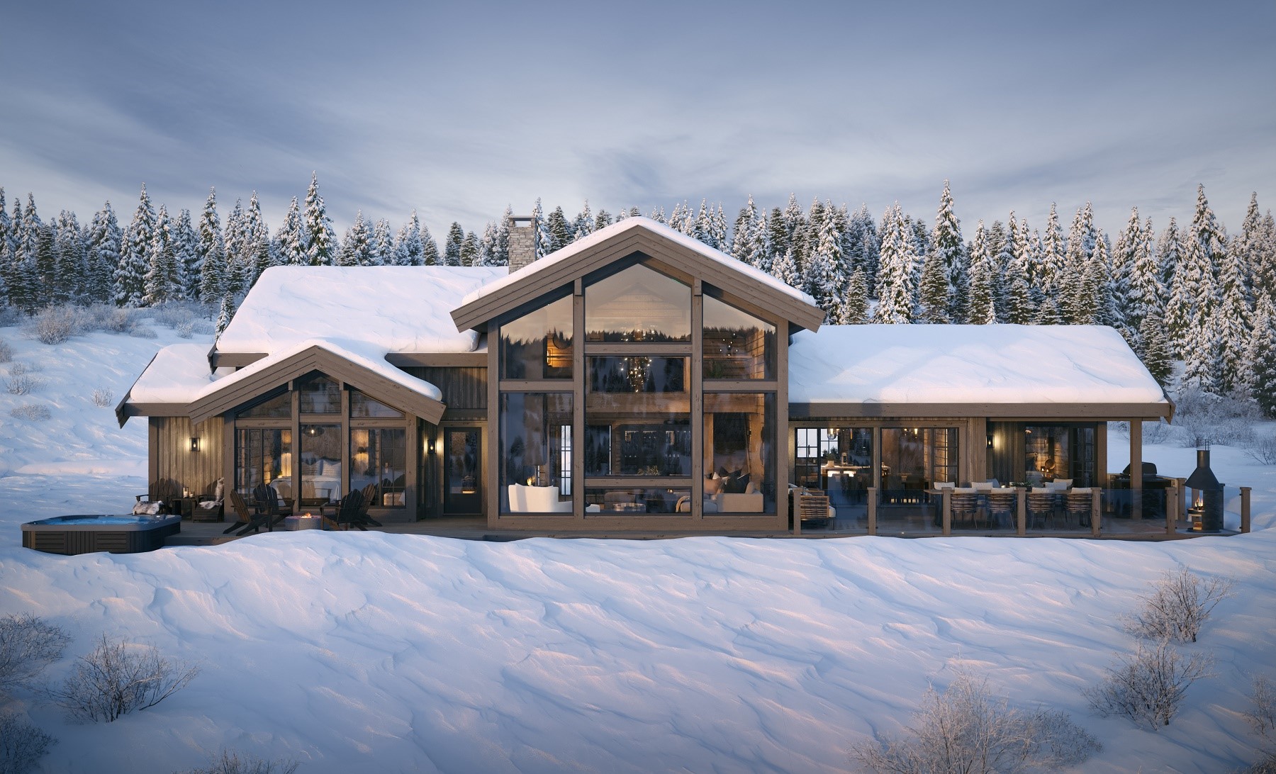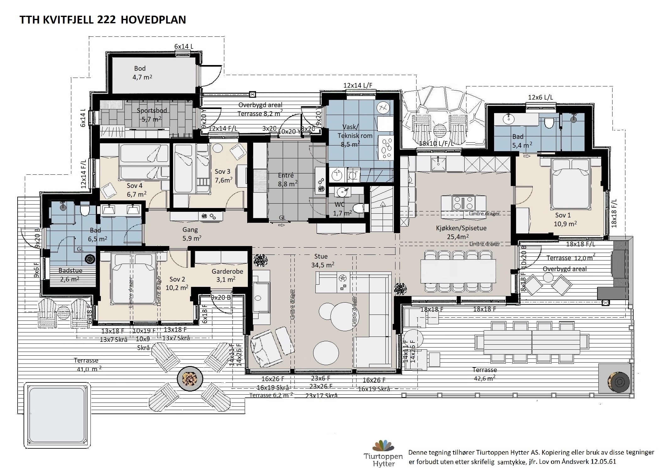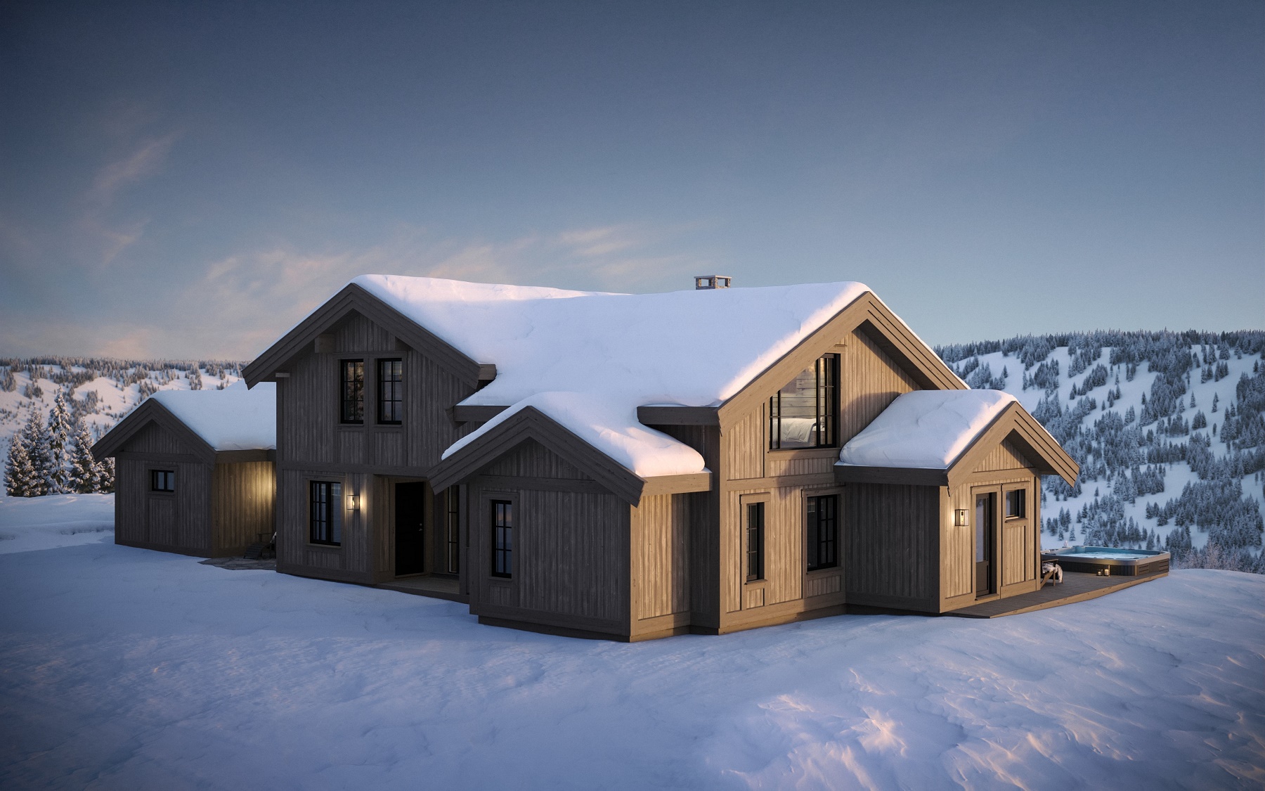 Kvitfjell 222 er en eksklusiv hytte med praktisk og arealeffektiv planløsning. Med 6 soverom, 4 bad/Wc og 2 stuer + sitteplasser på galleriet er hytta godt tilrettelagt for familie og venner i alle aldersgrupper. Store vindusflater og høy takhimling i stua og peisen sentralt plassert tilbyr hytta flotte naturopplevelser innenfra. Utendørs arealer planlagt for både grill og hygge rundt spisebord og for avslapping med varme i bad og rundt peisbål.