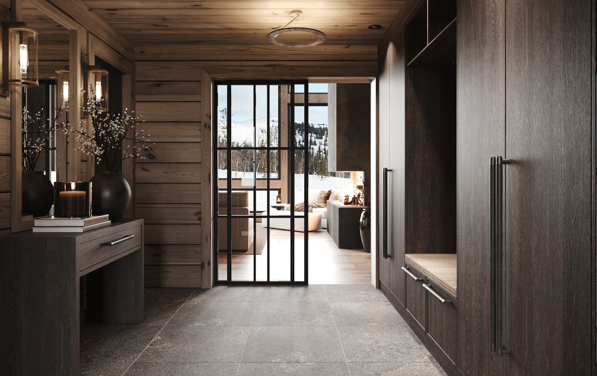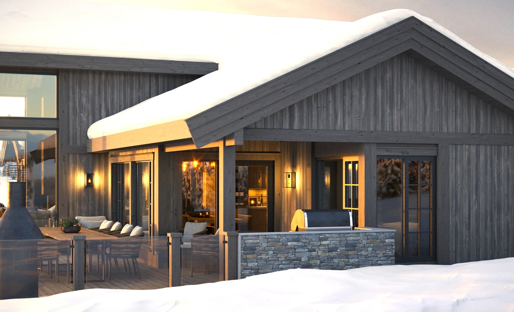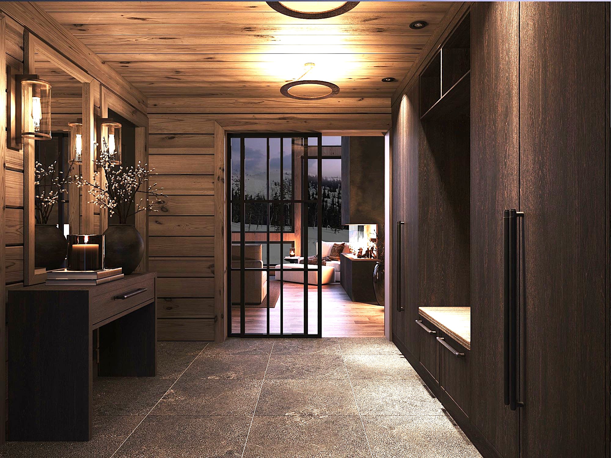 Kvitfjell 222 har inntrukket tak overbygd og vær beskyttet inngangsparti med ytterdører til både entré, redskapsbod, sportsbod og vask/teknisk rom. Entréen er romslig med mye garderobeplass. I entréen er det også dør til vask/teknisk rom og Wc rommet. Gjennom doble glassdører kommer du inn til stua og møter fjellnaturen gjennom vinduene i front og peisflammene.