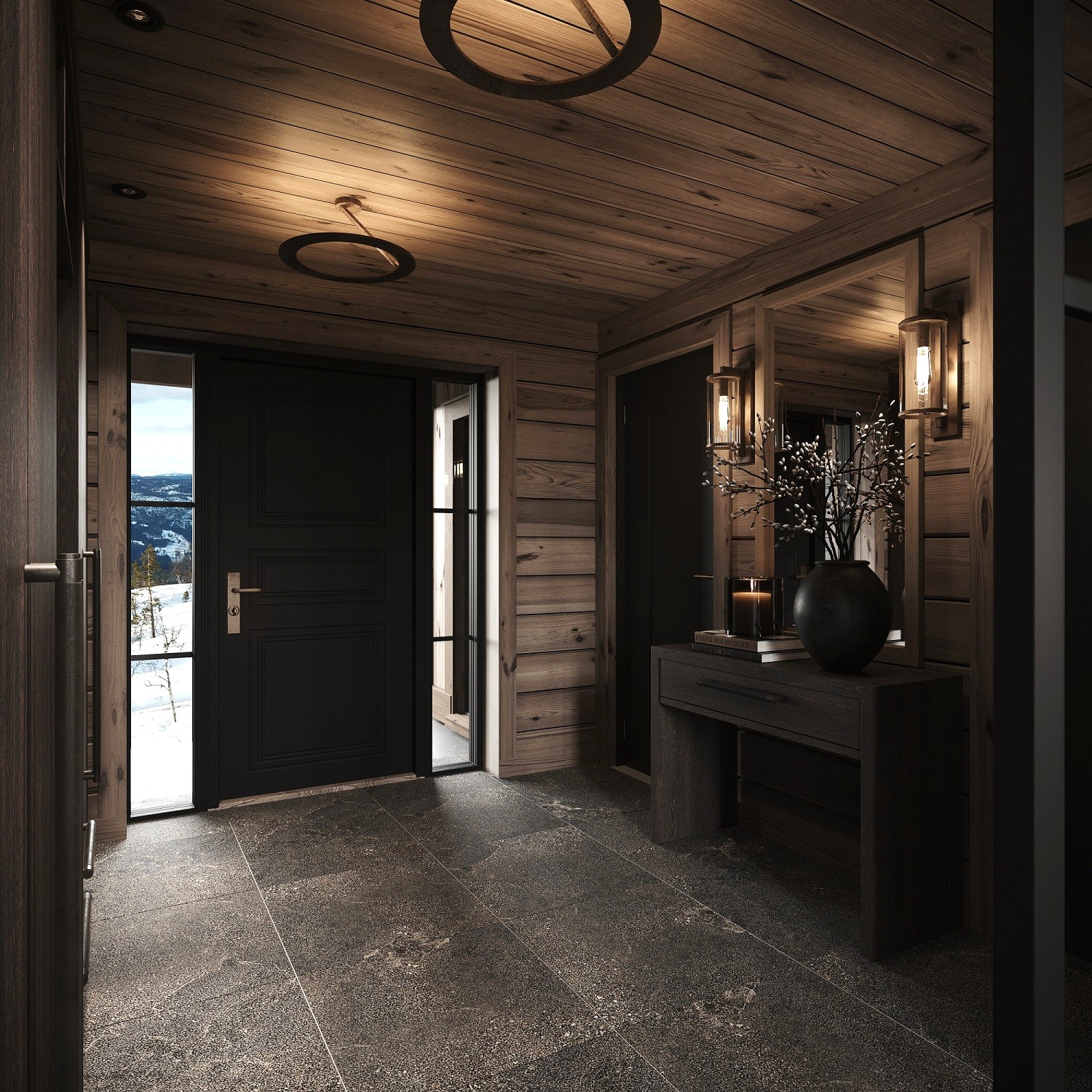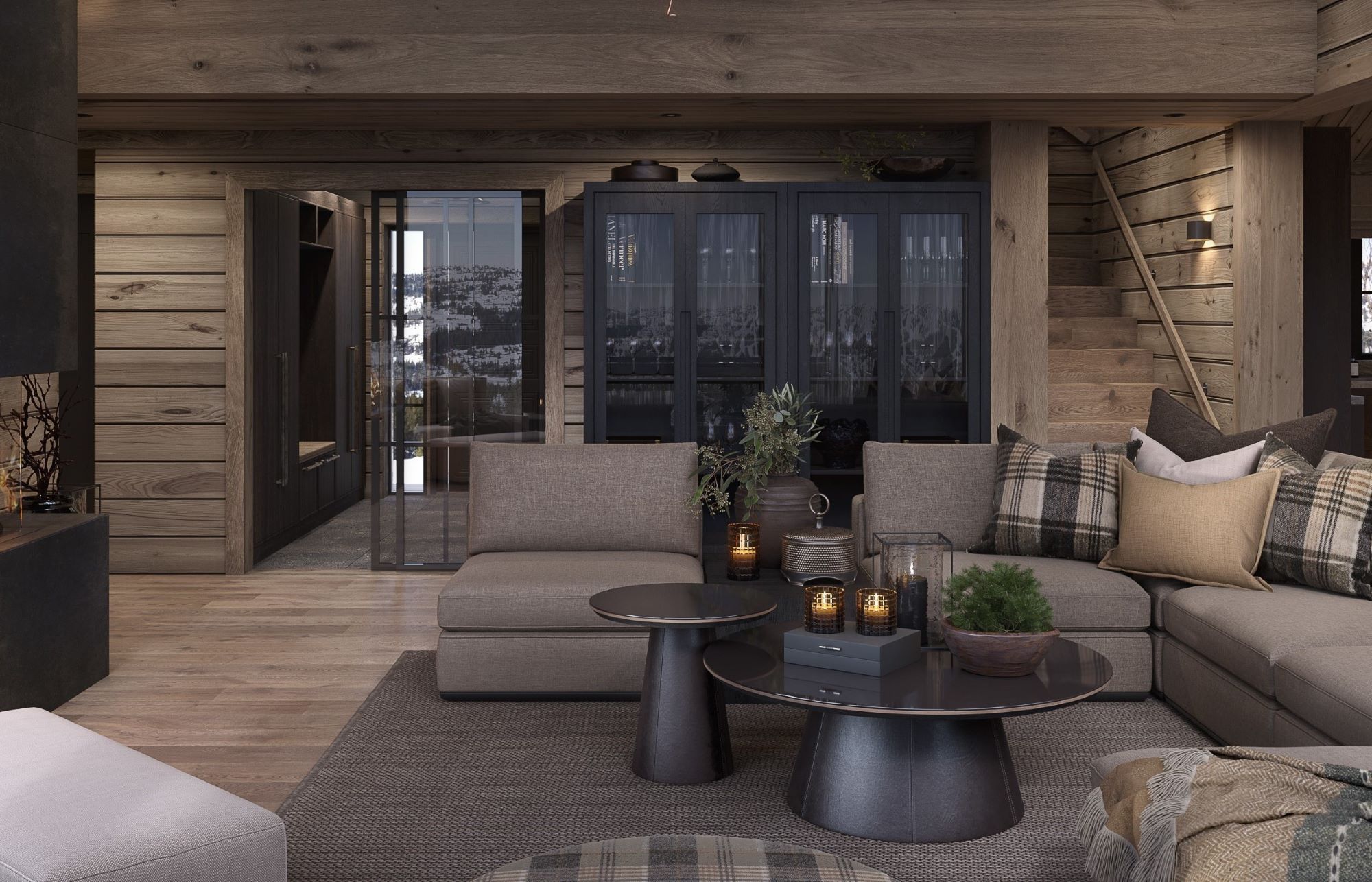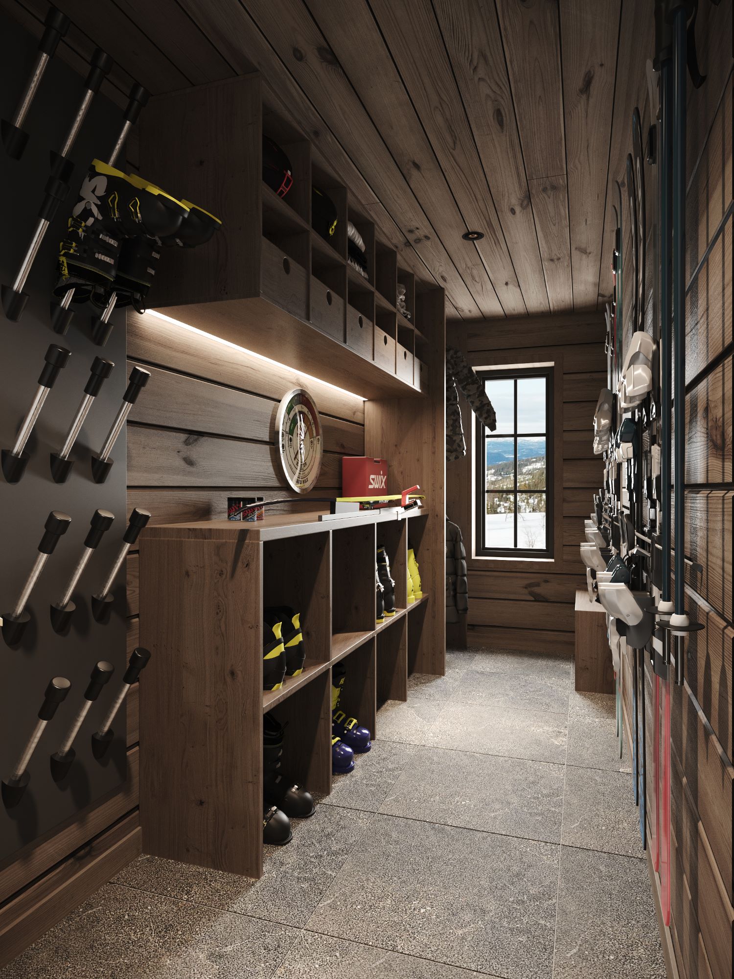 Kvitfjell 222 har inntrukket tak overbygd og vær beskyttet inngangsparti med ytterdører til både entré, redskapsbod, sportsbod og vask/teknisk rom. Entréen er romslig med mye garderobeplass. I entréen er det også dør til vask/teknisk rom og Wc rommet. Gjennom doble glassdører kommer du inn til stua og møter fjellnaturen gjennom vinduene i front og peisflammene.