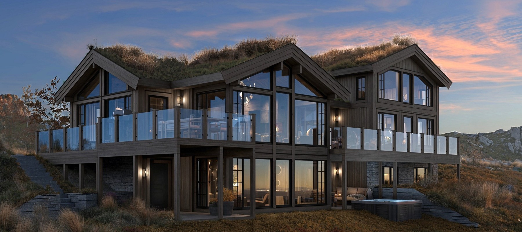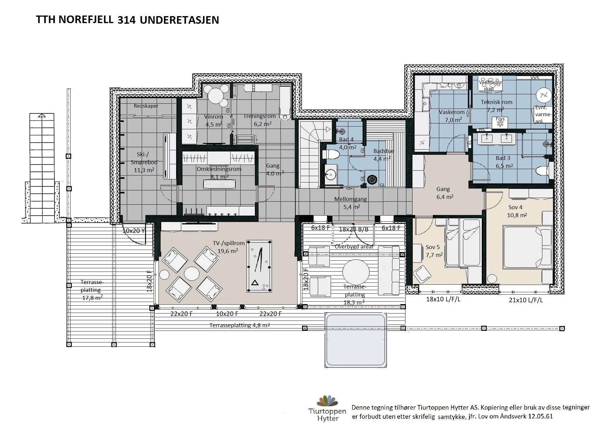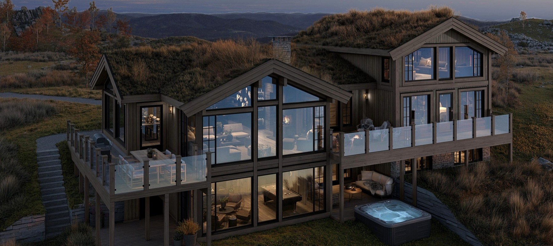 TTH Norefjell 1-314 – eksklusiv, innholdsrik og arealeffektiv hytte/fritidsbolig tilpasset skrå tomt med BRA 304 m2, Bya 207 m2.