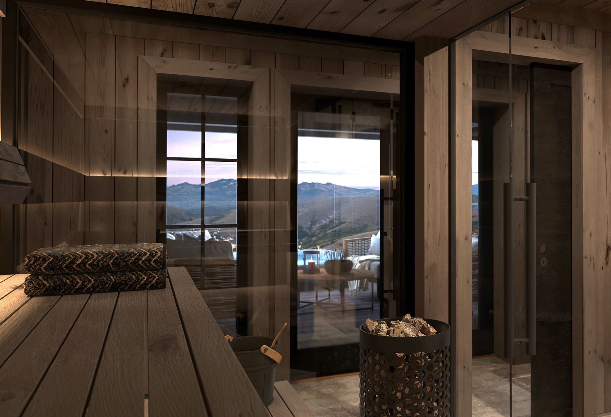 Ski-/smøre bod og redskaper avskjermet bak skyvedører, omkledningsrom, treningsrom, vin rom og stue for TV, spill og avslapning etter en dag i friluft.